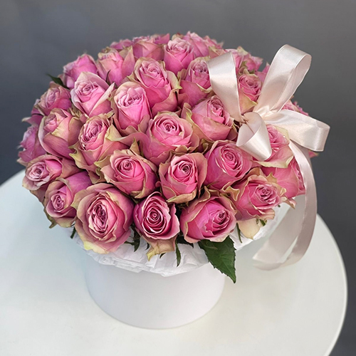 Композиция в шляпной коробке из 43 роз